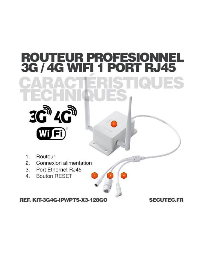 Facile d'installation, insérez une carte SIM (taille nano) avec du crédit internet dans le routeur 3G/4G, allumez la caméra et alimentez le routeur, ensuite depuis l'application sur votre appareil iOS / Android connectez la caméra sur le réseau WI-Fi émis par le routeur pour pouvoir profiter de la connexion internet.