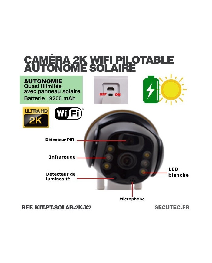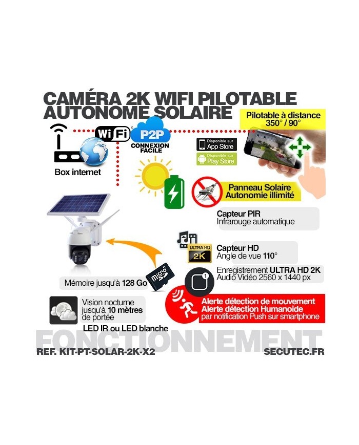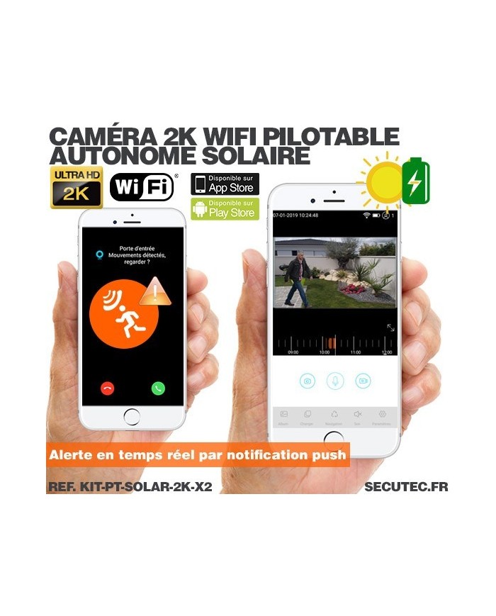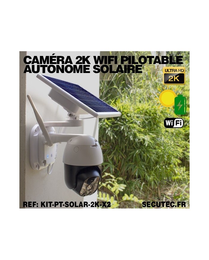 Deux caméras pilotables solaire IP WIFI Ultra HD 2K waterproof infrarouge détection humaine 128 Go