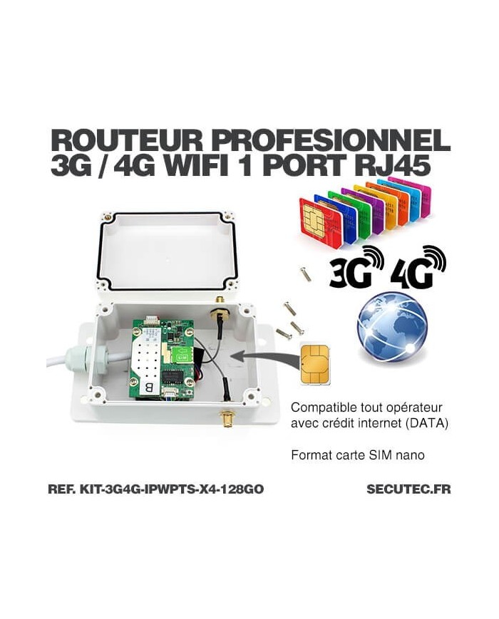 Note : Vous pouvez utiliser une carte SIM avec ou sans abonnement de n'importe quel opérateur télécom (nous vous conseillons tout de même de rester sur les opérateurs principaux). La consommation DATA internet est utilisé uniquement lorsque vous visualiser ou communiquer avec le système de vidéosurveillance. Cela vous permettra d'économiser du crédit DATA, par exemple pour une connexion au système occasionnel 5 Go de crédit DATA internet seront suffisant..