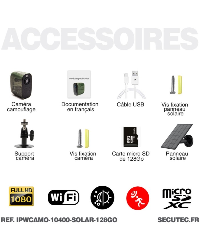 La caméra camouflage solaire intègre un capteur couleur HD de 2 mégapixels disposant d’un grand-angle de vue de 120°.